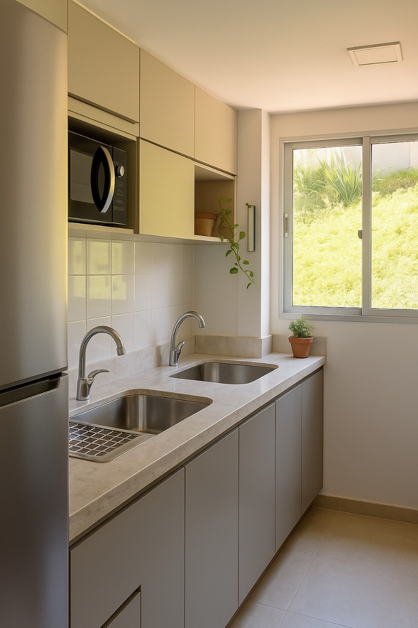 Projeto completo de um apartamento de 50m², contemplando cozinha, lavanderia, sala de estar e jantar, dois dormitórios e banheiro. Um dos grandes diferenciais deste trabalho foi a condução 100% online, do briefing ao projeto executivo, mostrando que é possível realizar uma transformação completa com eficiência e assertividade, atendendo plenamente às necessidades e expectativas do cliente mesmo à distância. O projeto incluiu visualizações em 3D e todo o detalhamento técnico necessário para a execução da obra, conduzida localmente pelo cliente.